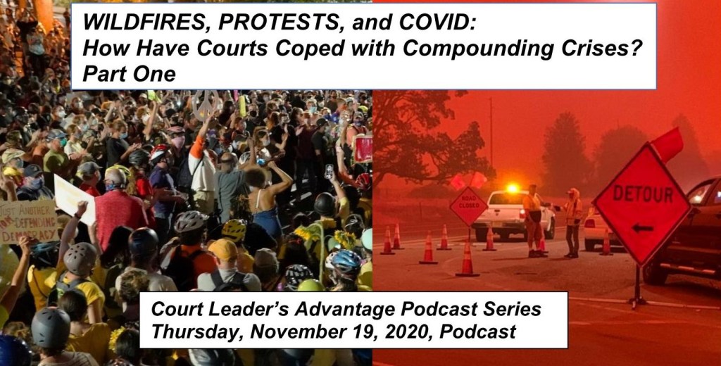 We are talking with court administrators whose courts have endured nightly violent demonstrations that have lasted for months, wildfires that have turned day to night and made the air unbreathable and, of course, the Coronavirus. This is part one of two episodes where our panel shares the lessons they have experienced first-hand