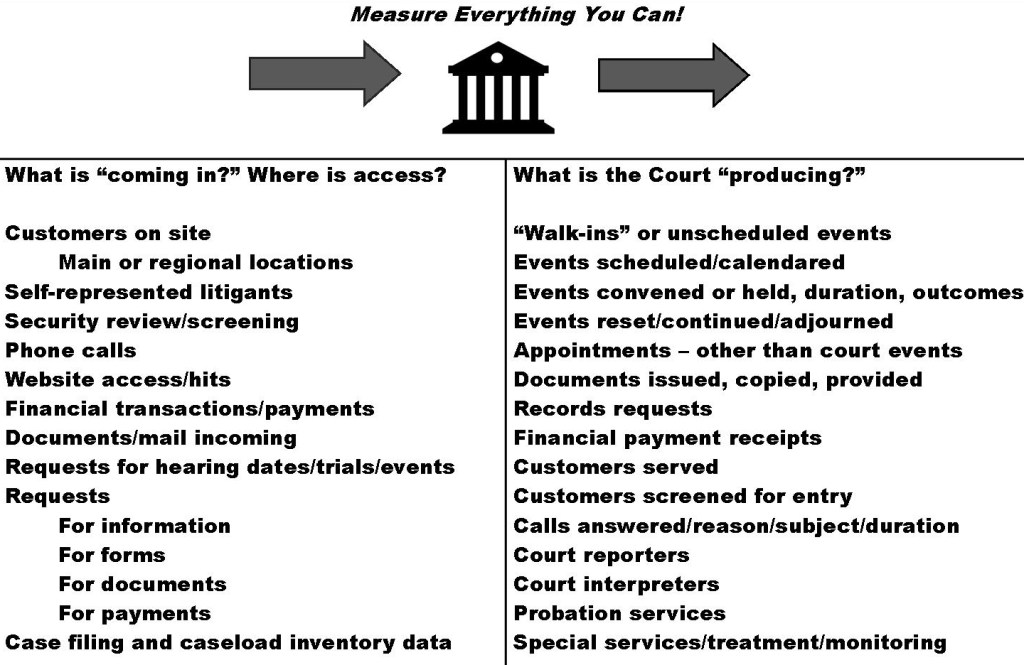 Can you measure these items? And can you link the ability of the court to perform these services to the fiscal resources provided for the court? The image below represents a visual of this concept. It was created and used for court leader training in February 2021 (Institute for Court Management, Accountability and Court Performance course).