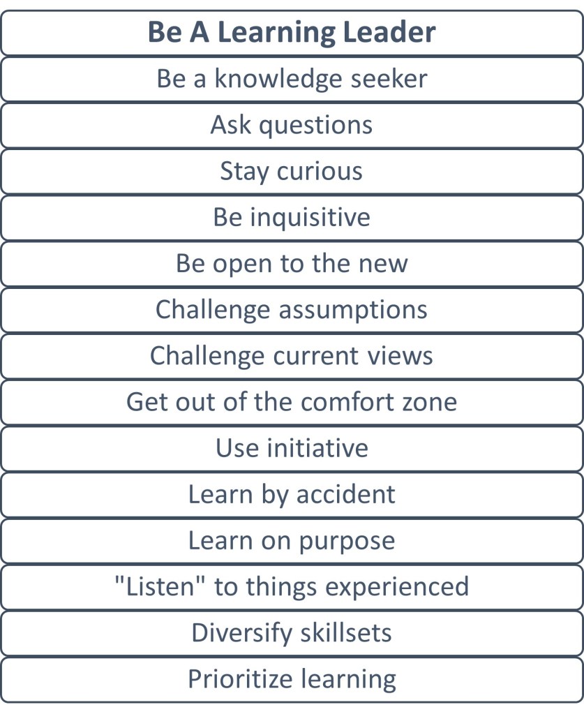 In conclusion, I offer some actions and ideas to be a learning leader. I hope you can think of additional behaviors! Go forth and join me in being a learning leader.