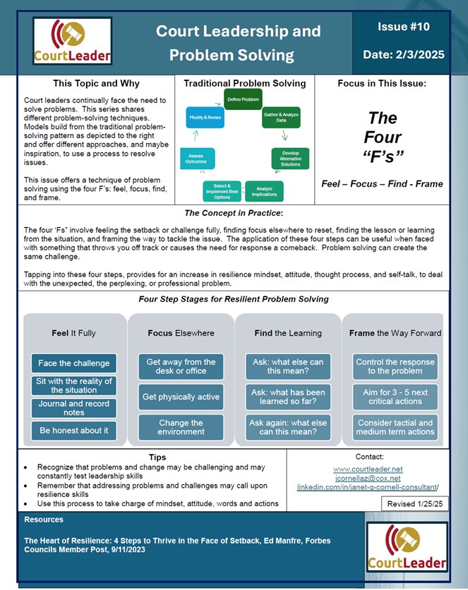 Court Leadership and Problem Solving – Issue #10, The Four “F’s”
