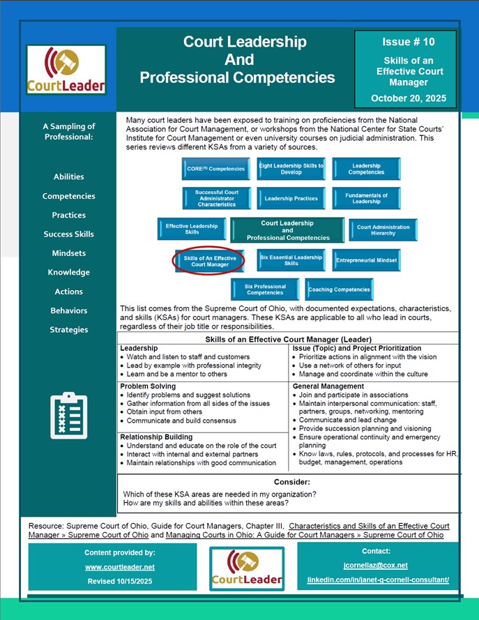 Court Leadership and Professional Competencies, Issue #10 – Skills of an Effective Court Manager